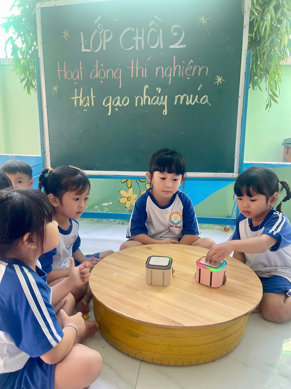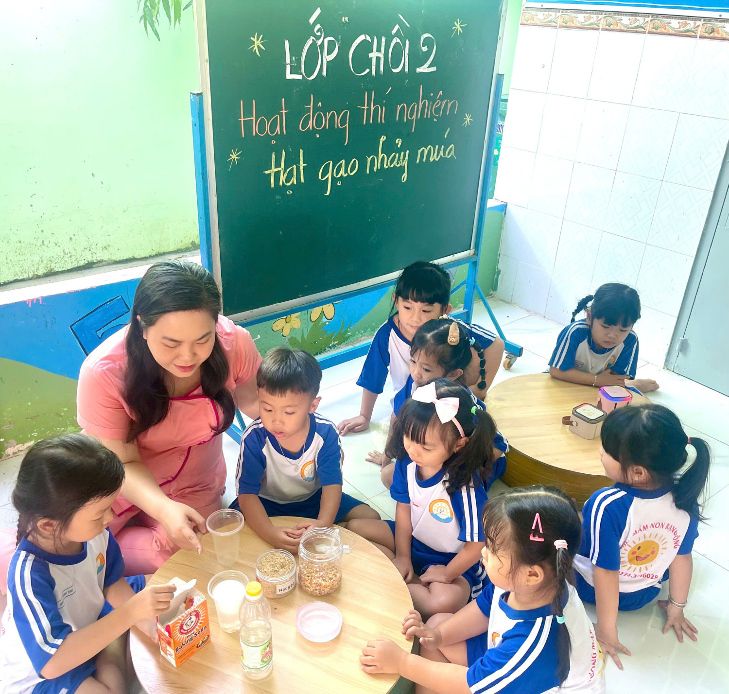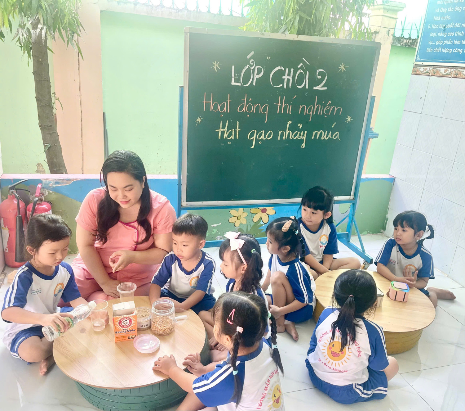 Hoạt động thí nghiệm "Hạt gạo nhảy múa" các bé lớp Chồi 2